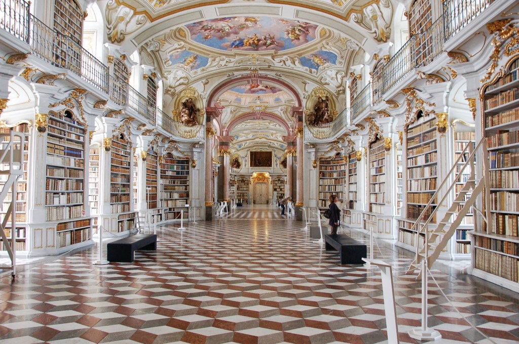His search for clues to the secret of „Emperor’s Eyrie“ leads Carlo, the protagonist of Nadja Dietrich’s novel Emperor’s Eyrie, to an imposing monastery library – a gigantic monument to the spirit.